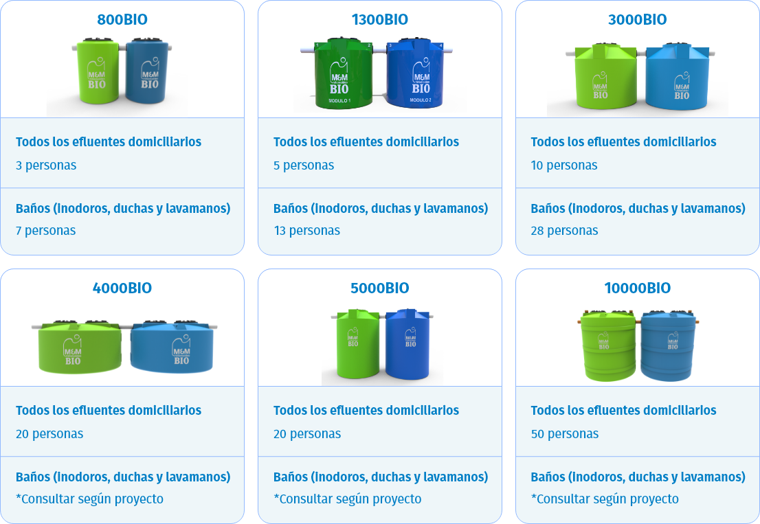 El Sistema Biodigestor M&M se encuentra diseñado para distintas capacidades, respondiendo a diferentes necesidades de uso y requerimientos de obra.
